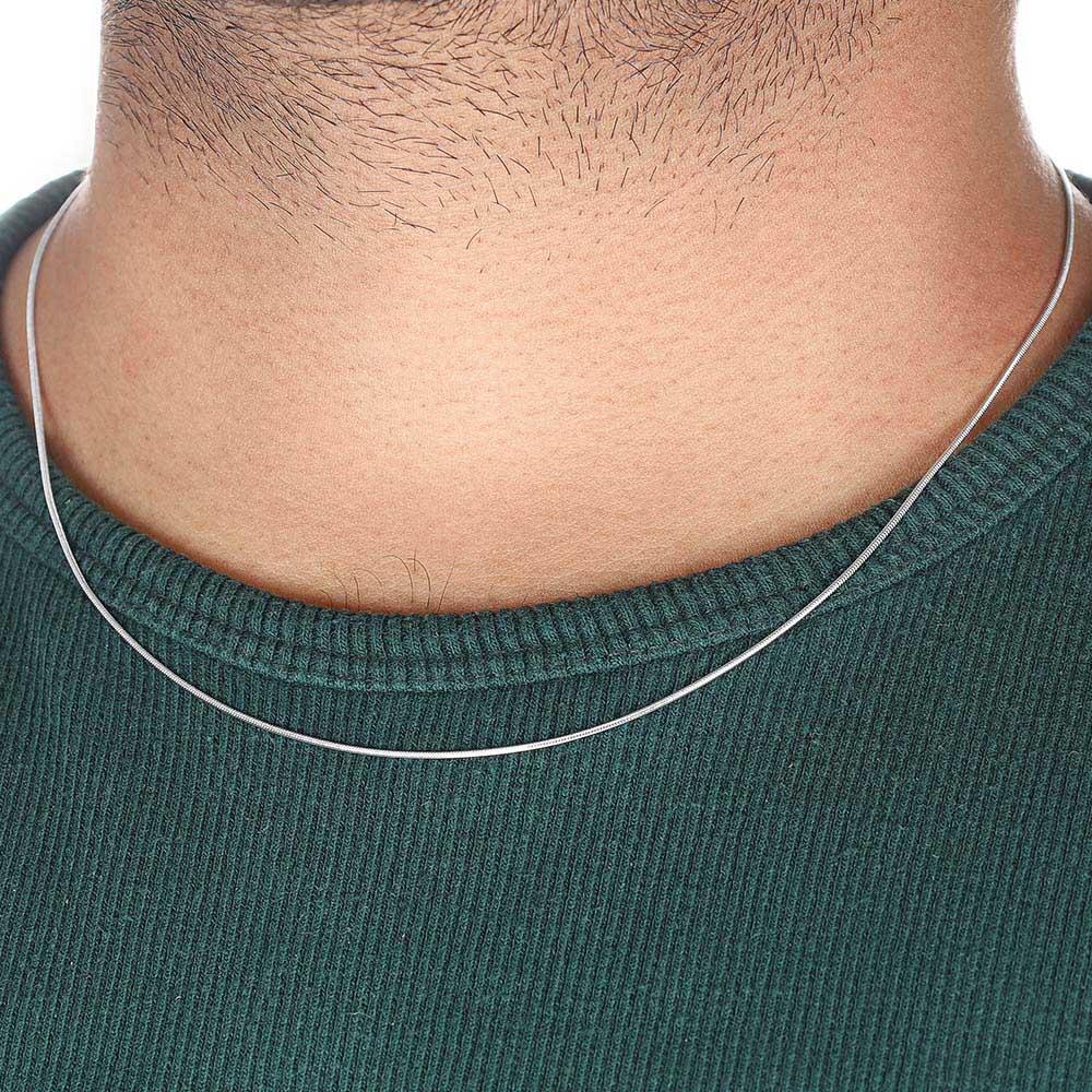 Indulging in a touch of everyday sophistication, this 9ct white gold snake chain features a delicate 0.9mm round design and a secure lobster clasp, ensuring a comfortable and stylish fit.