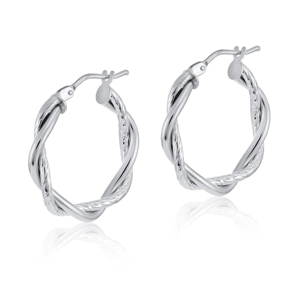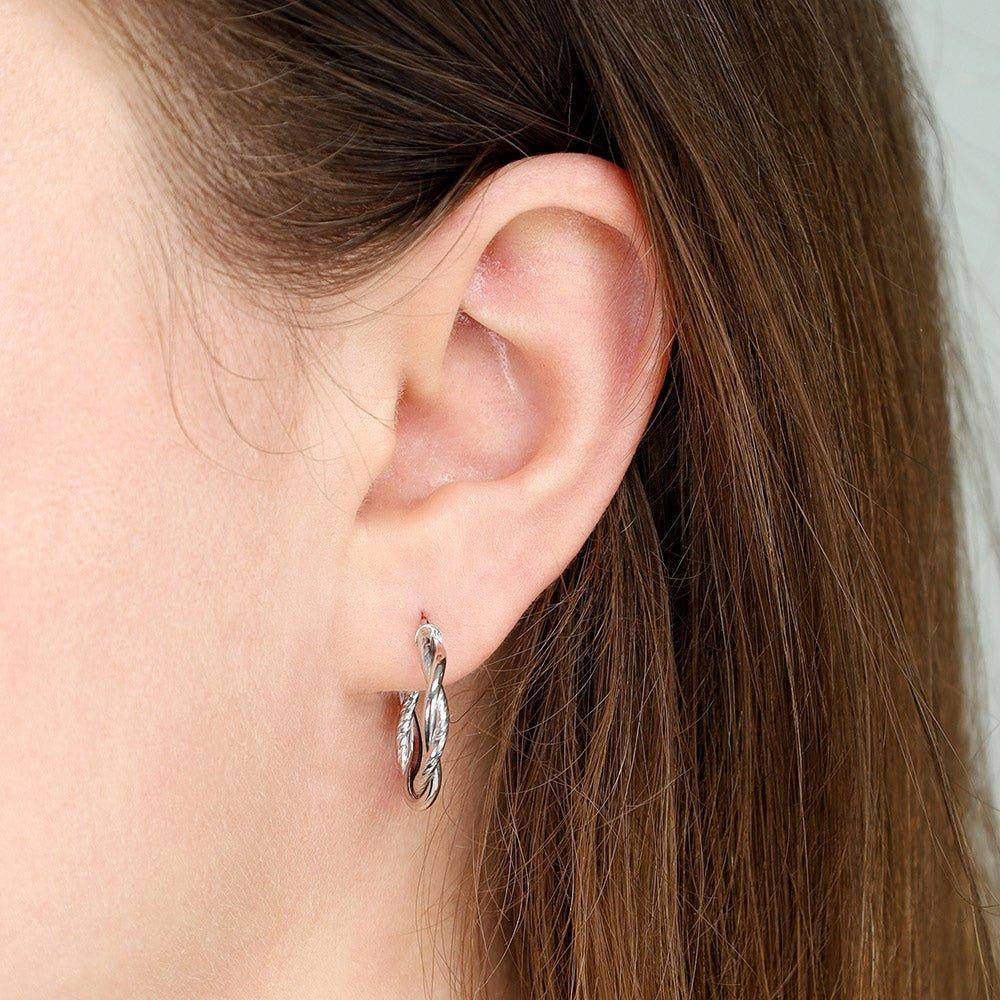 This 20mm white gold twist hoop earring is a timeless piece of jewellery that effortlessly combines understated elegance with modern sophistication, making it perfect for everyday wear or a special occasion.