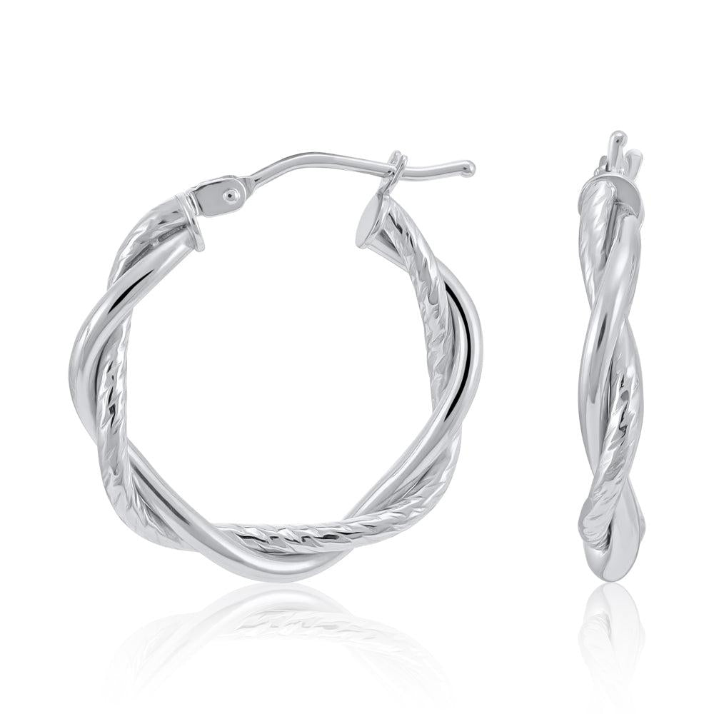 Crafted from 9ct white gold with a rhodium coating, this twisted hoop earring exudes luxury and refinement, suitable for a variety of styles and preferences.