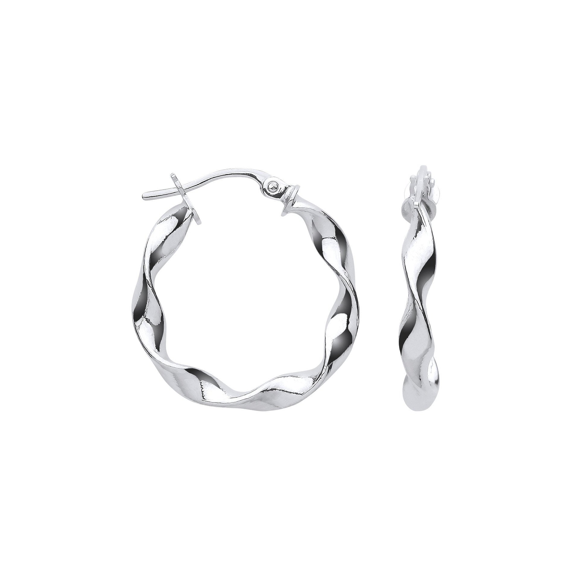 These exquisite White Gold 21mm Twisted Hoop Earrings strike the perfect balance between modern sophistication and timeless elegance. Crafted from 9ct gold with a luxurious rhodium coating, they boast a radiant white hue that complements any skin tone.