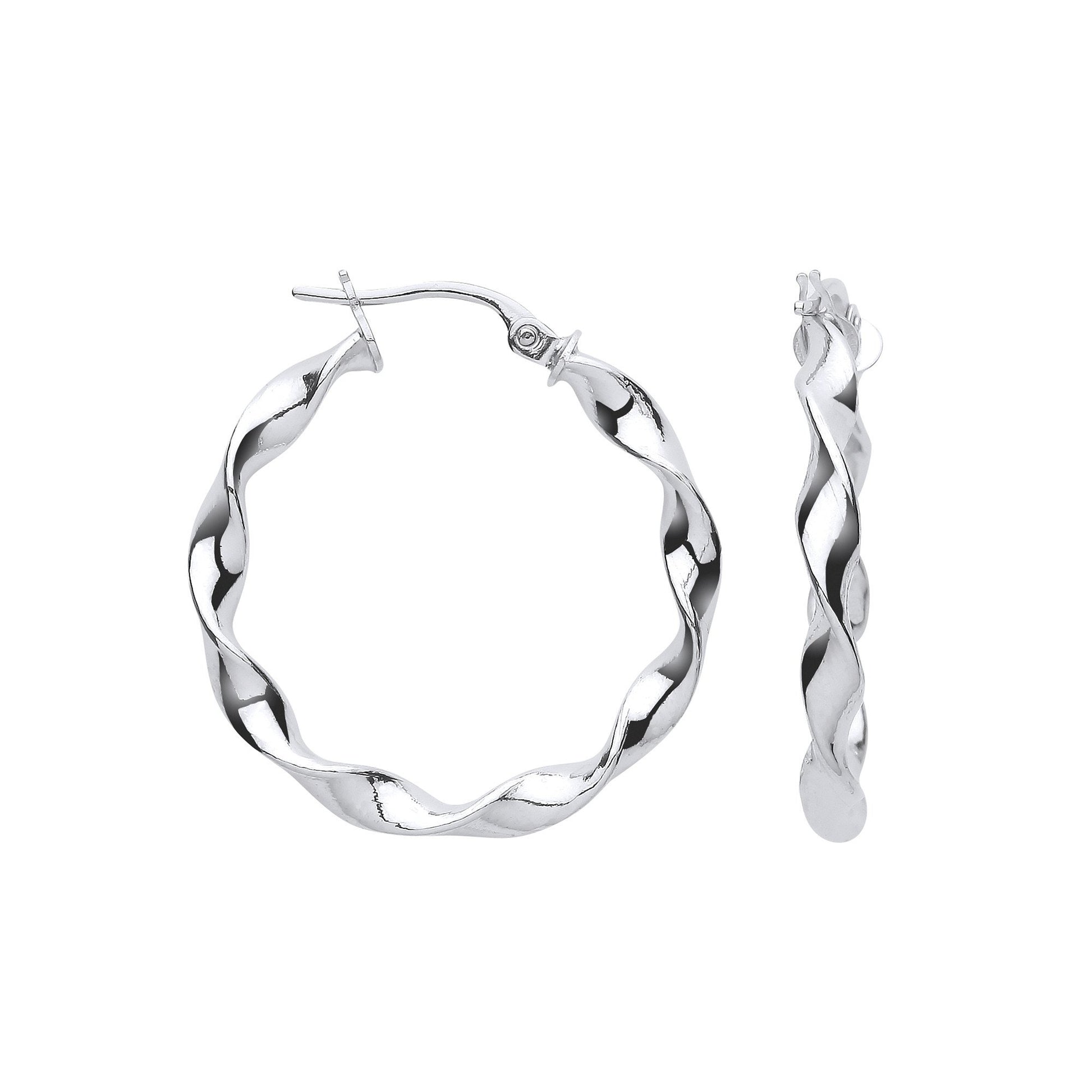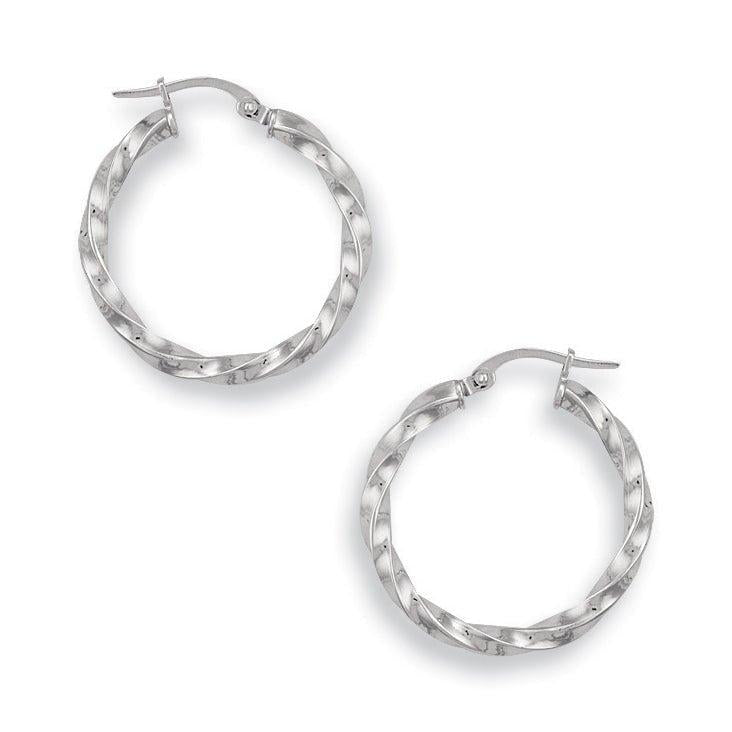 White Gold 25mm Twisted Hoop Earrings - 1.3g
