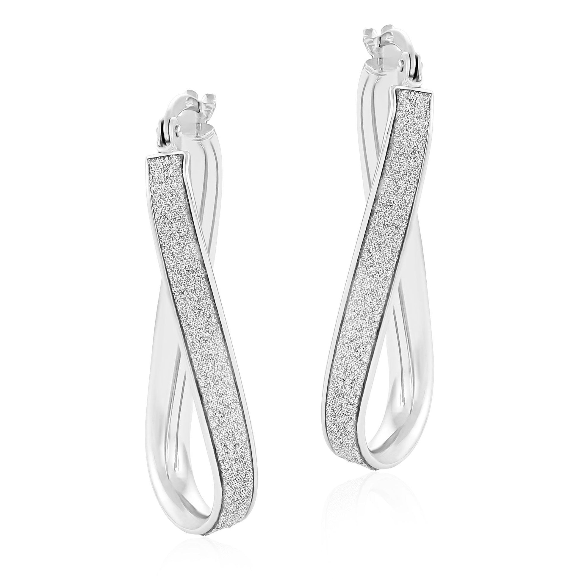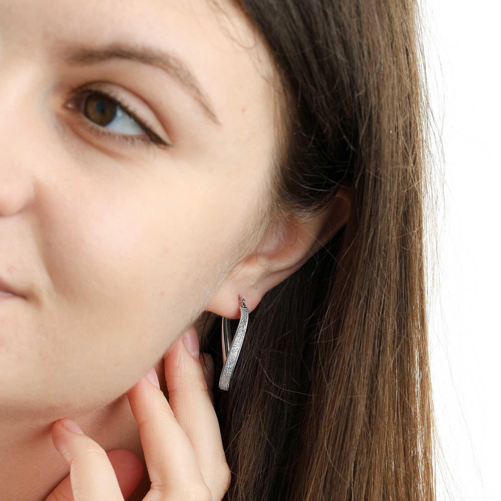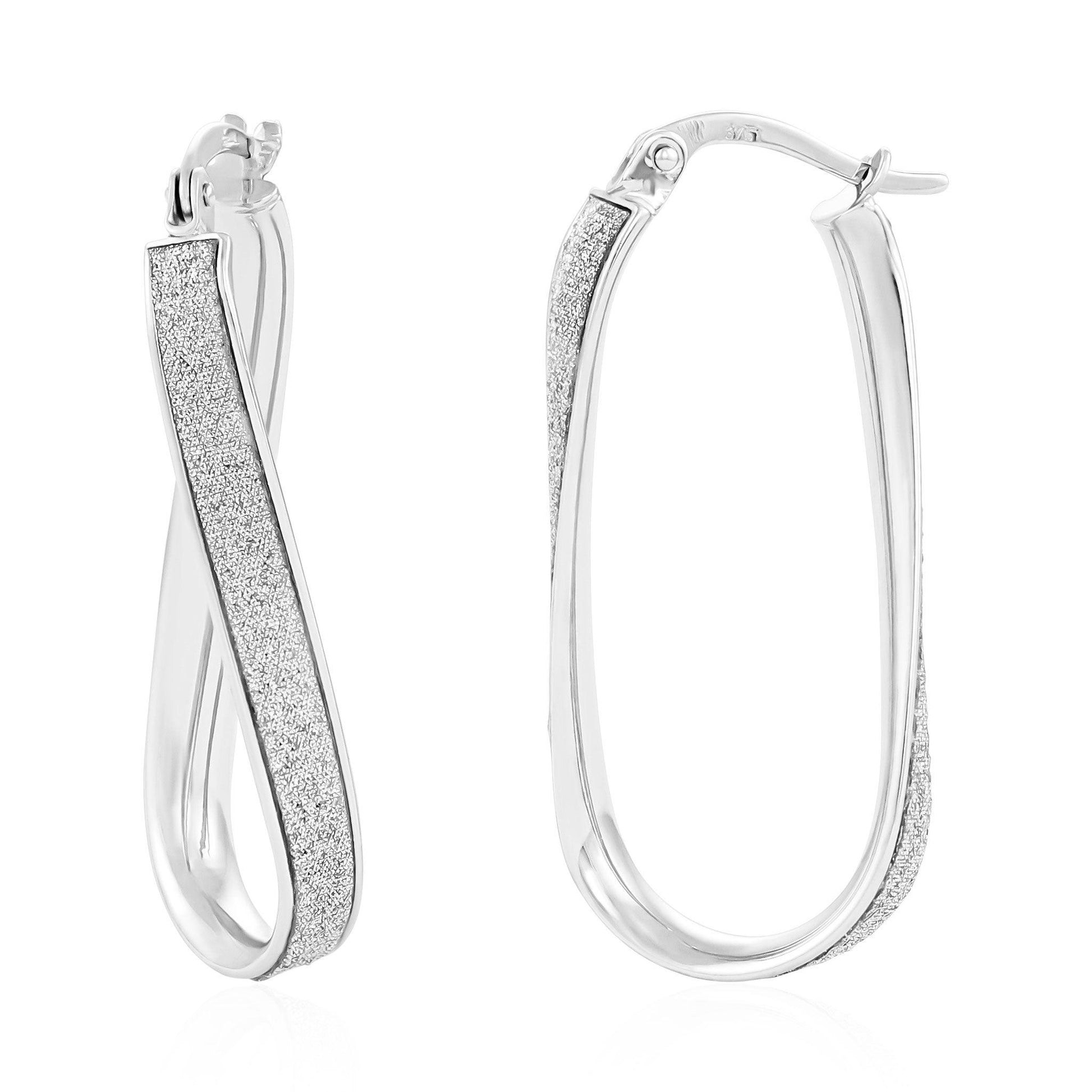 These exquisite White Gold Glitter Oval Twist Hoop Earrings exude understated elegance, perfect for indulging in a touch of everyday sophistication. The twisted design adds a subtle nuance to this classic style.