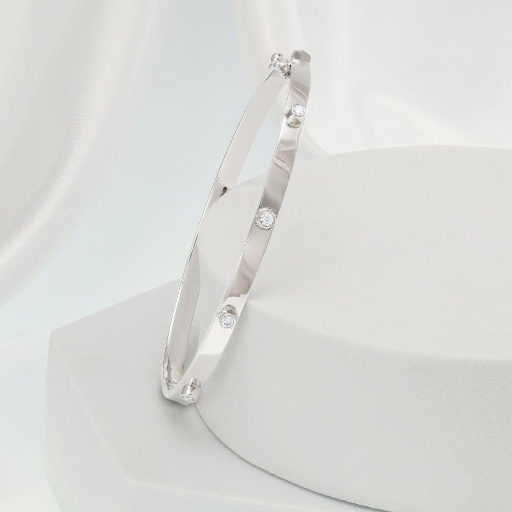 White Gold Hollow Cubic Zirconia Oval Bangle