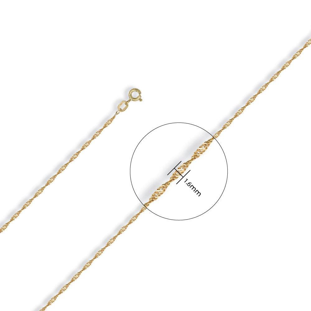 This exquisite 9ct yellow gold Singapore chain is a timeless piece of jewellery that will be treasured forever. Effortlessly combines classic elegance with understated sophistication, making it perfect for everyday wear.
