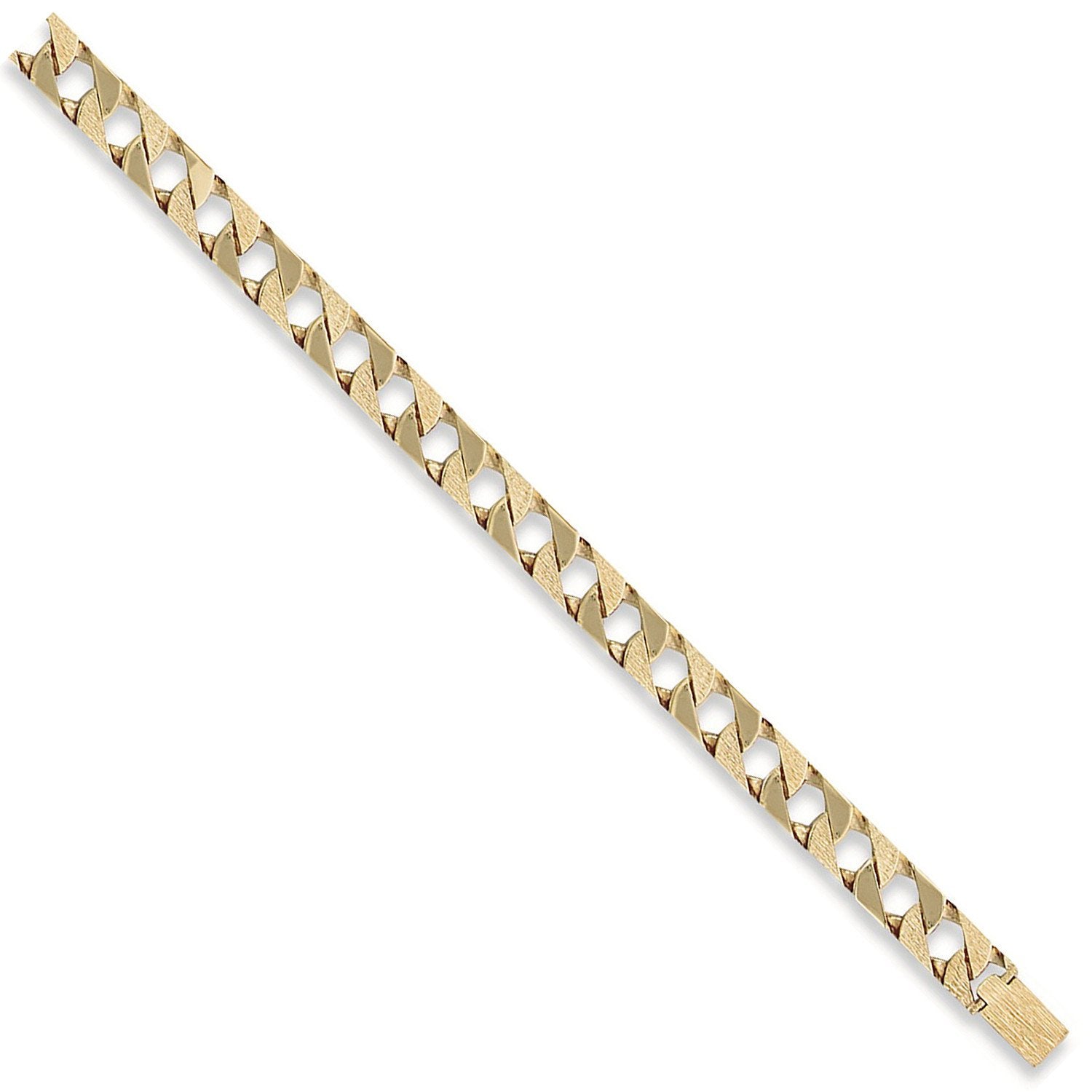 This exquisite 9ct yellow gold curb bracelet boasts a beautifully crafted design, perfect for indulging in a touch of everyday sophistication. Its 12mm width and plain and bark textured details create a striking visual effect that's sure to turn heads.