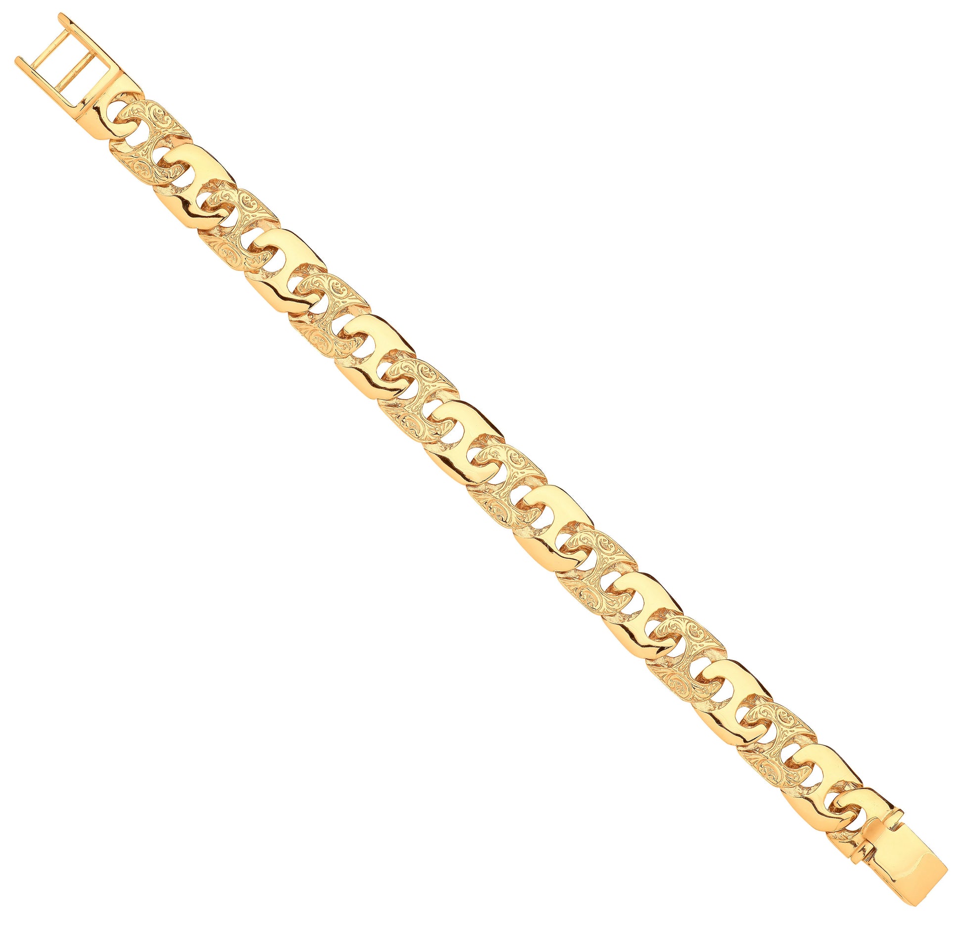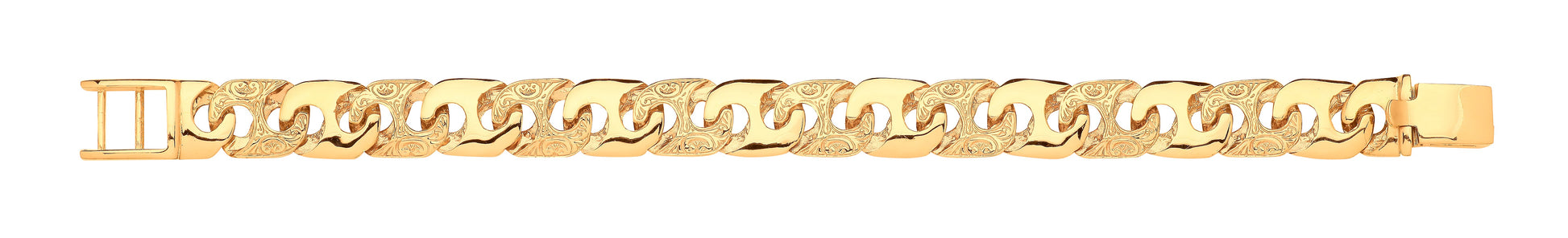 Yellow Gold 14mm Plain & Engraved Anchor Medium Link Gents Bracelet