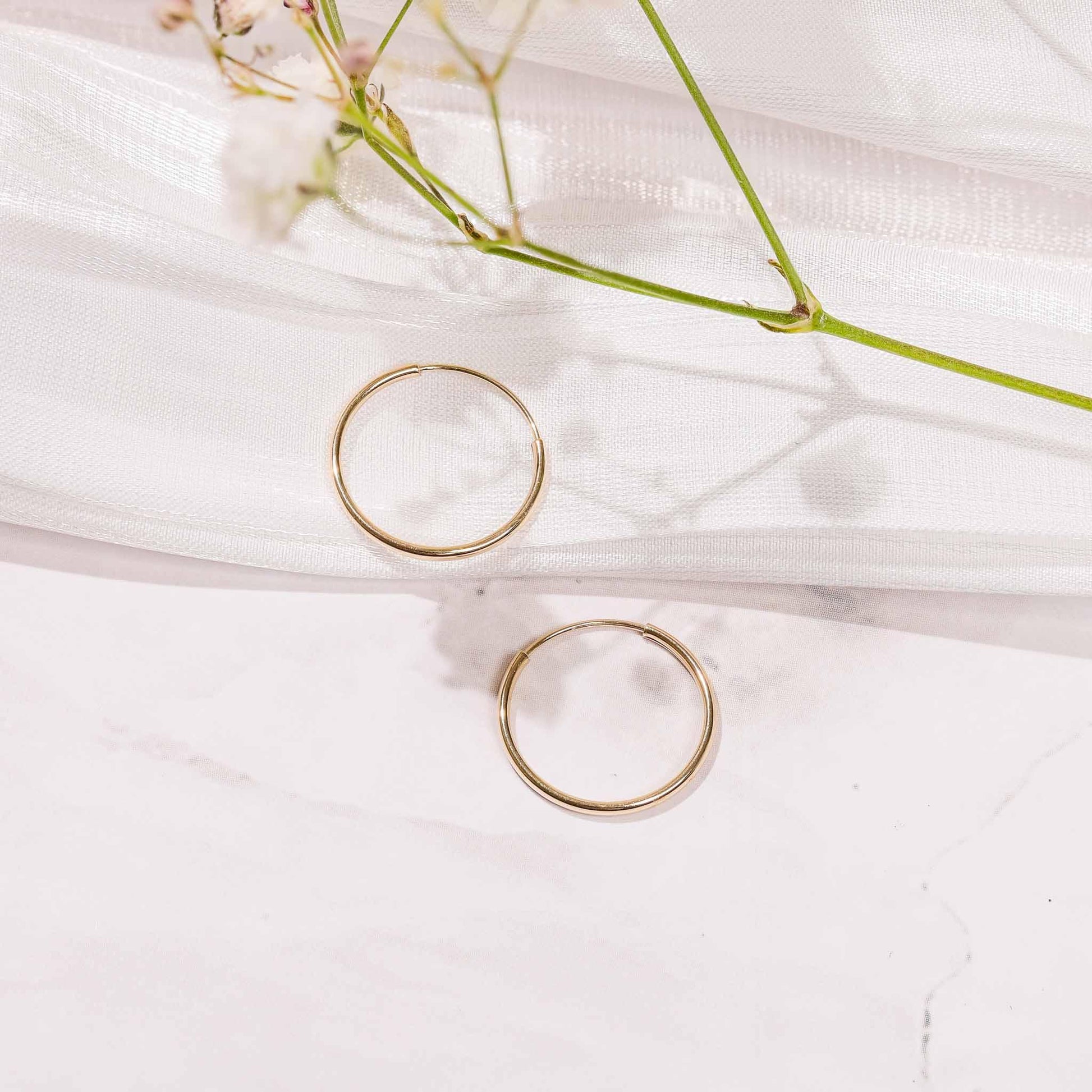 Indulging in a touch of everyday sophistication, these 15mm yellow gold sleepers exude understated elegance, perfect for adding a refined finishing touch to any outfit.
