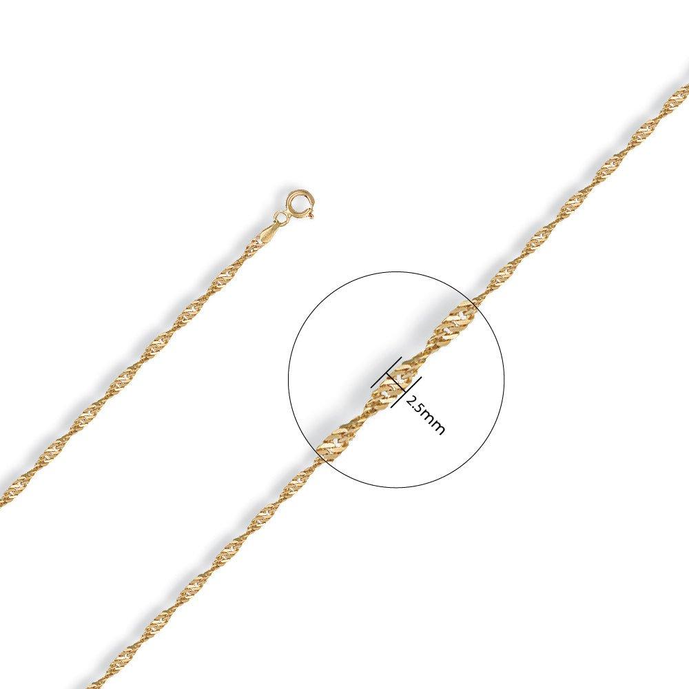 The Singapore chain style, characterised by its delicate, interlocking design, adds a touch of whimsy and visual interest to this beautiful piece of jewellery. Paired with a secure bolt ring clasp, it ensures a comfortable and effortless fit, suiting a variety of styles and preferences.