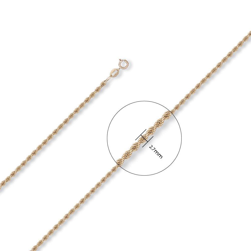 Indulging in a touch of everyday sophistication, our 2.7mm Hollow Rope Chain in 9ct Yellow Gold is a timeless piece that exudes understated elegance. Crafted from the finest materials, this beautiful chain boasts a delicate rope design that adds a subtle touch of refinement to any outfit.