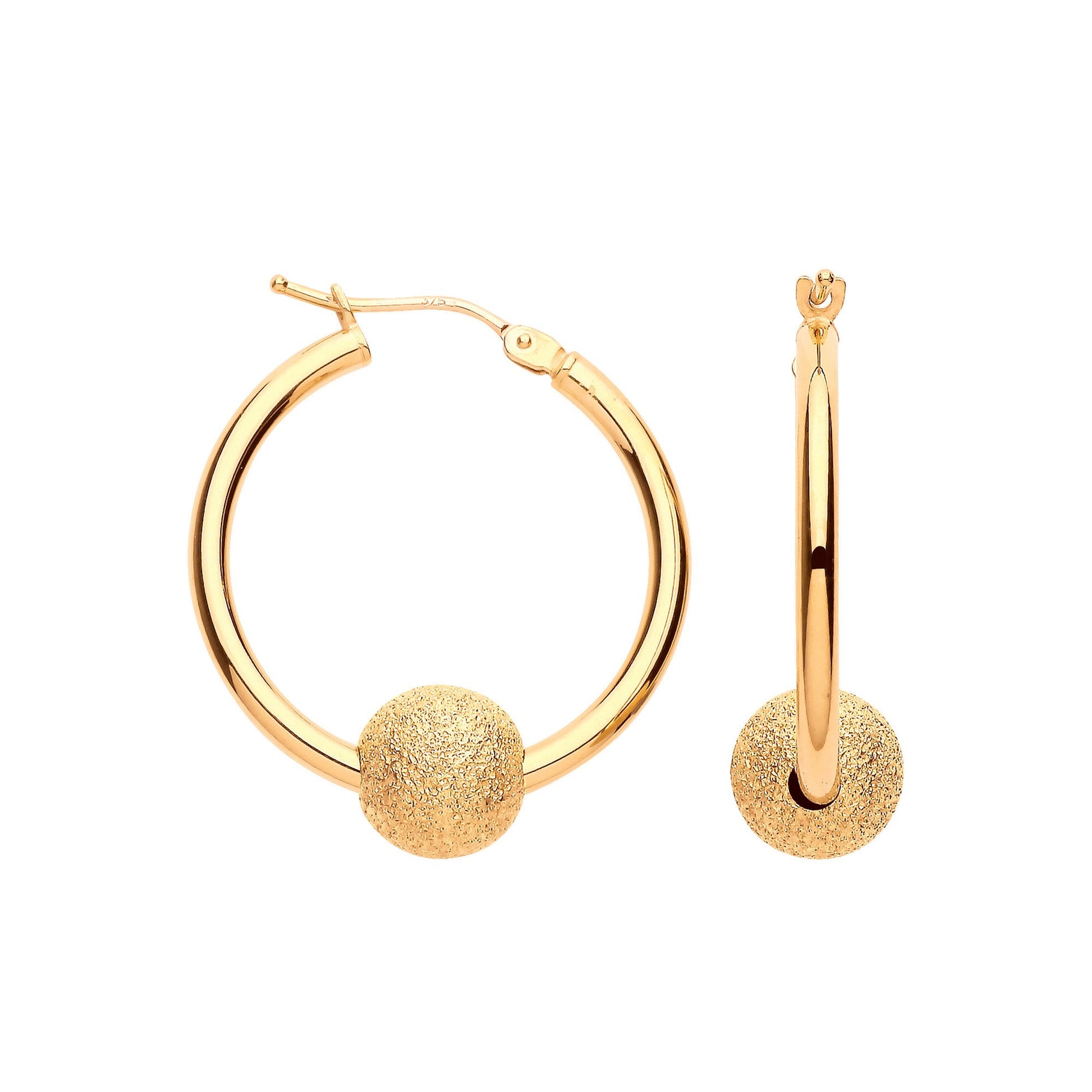 Yellow Gold 23mm Glitter Ball Hoop Earrings