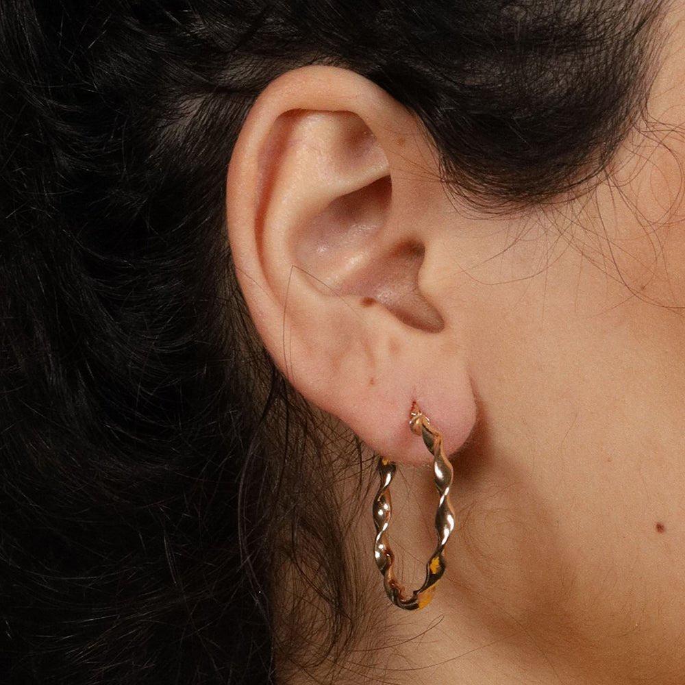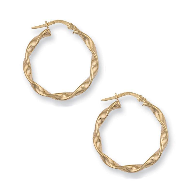 Exuding warmth and sophistication, these 9ct yellow gold twisted hoop earrings are a timeless choice for any occasion. Crafted with precision, their elegant design effortlessly combines classic style with modern flair.