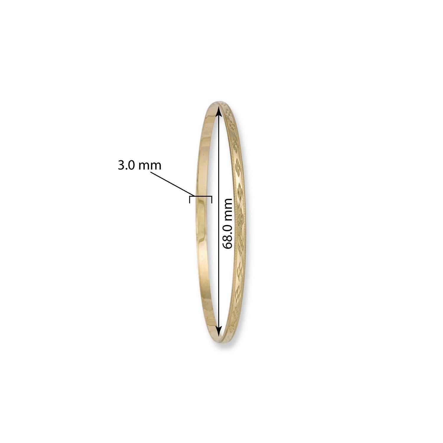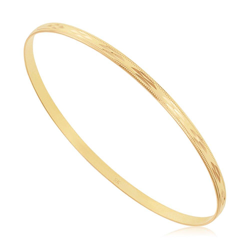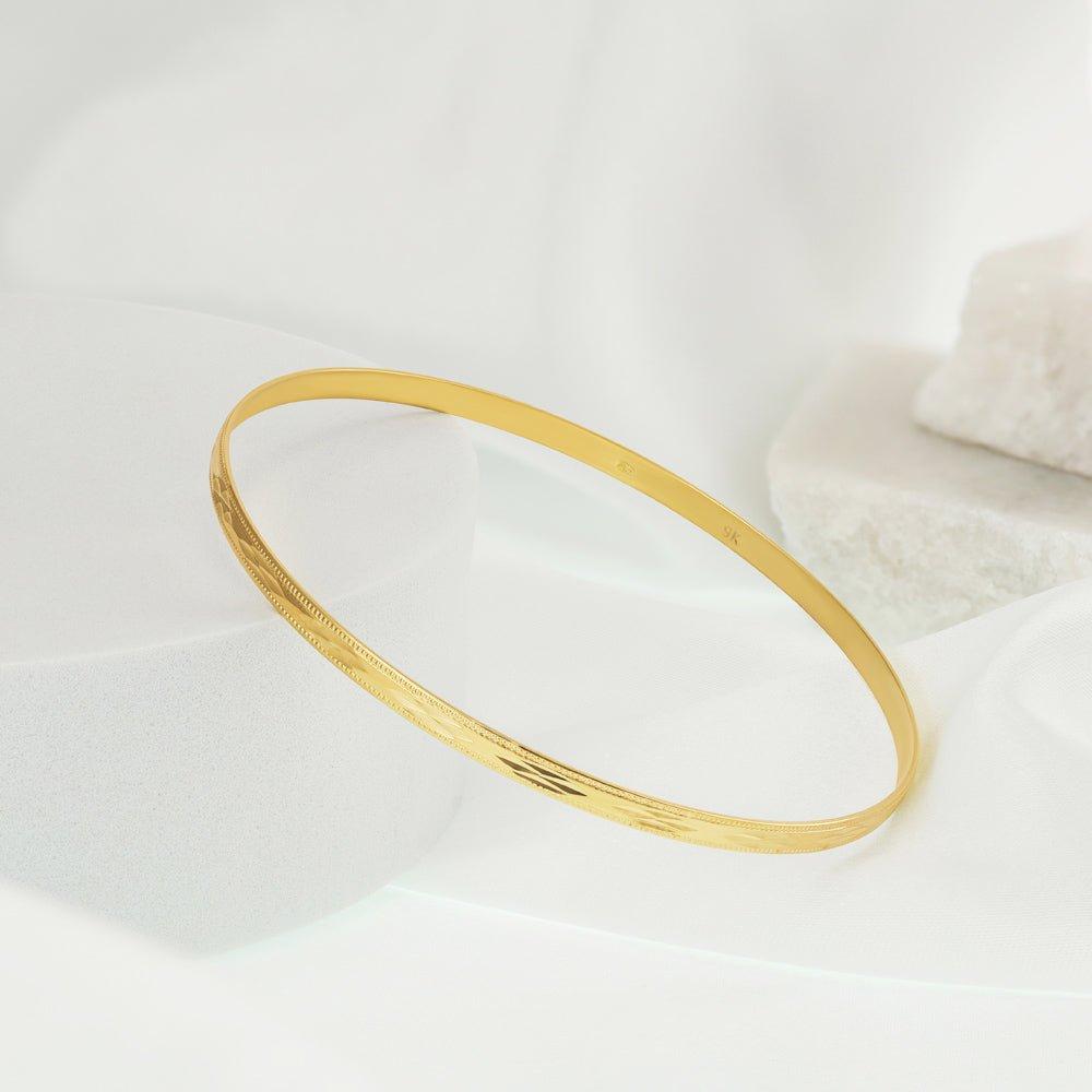 Yellow Gold 3mm Diamond Cut D-Shaped Slave Bangle