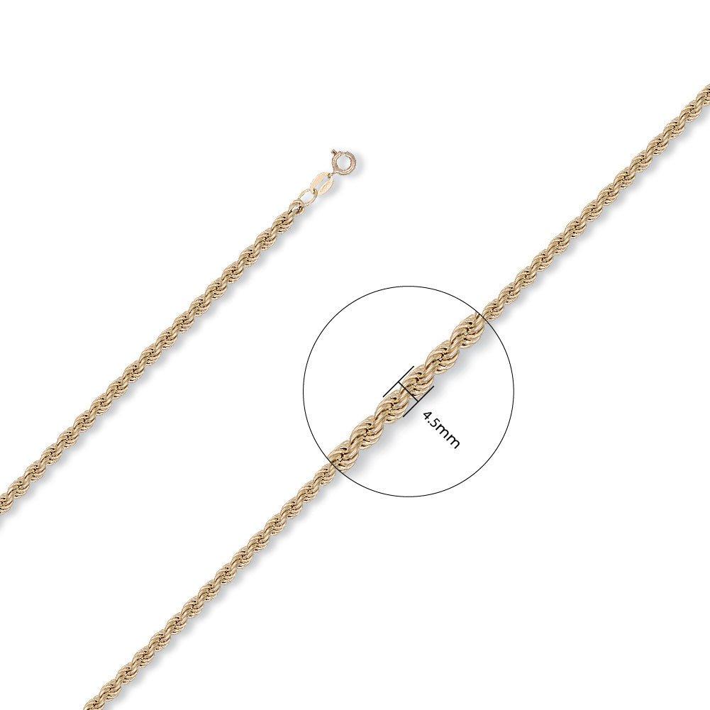 This exquisite 9ct yellow gold rope chain strikes the perfect balance between understated elegance and eye-catching sophistication. Crafted from high-quality metal, its hollow design adds a touch of delicate refinement.