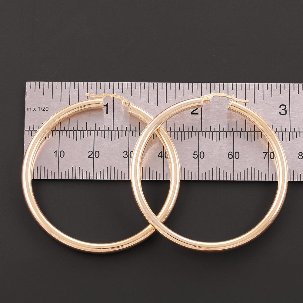 Yellow Gold 46mm Plain Tube Hoop Earrings