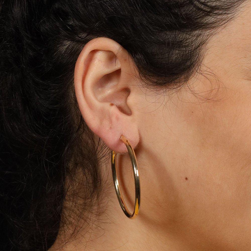 With their sleek, plain tube design and hinged fastening, these hoop earrings are perfect for adding a subtle touch of luxury to your everyday look. Whether dressing up or dressing down, they provide a versatile and sophisticated finishing touch.