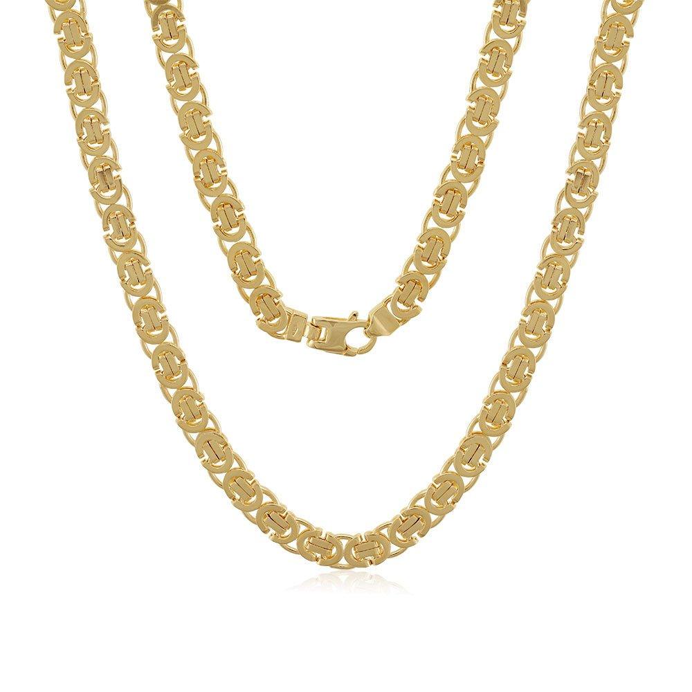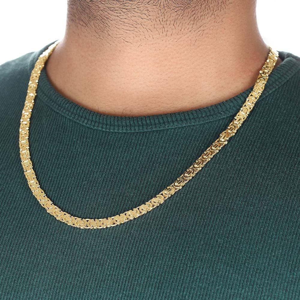 The intricate Byzantine design lends a touch of ancient charm to this modern piece, while the lobster clasp ensures a secure and comfortable fit. Whether you're looking for a statement piece or a subtle finishing touch, this chain is sure to complement a variety of styles and occasions.