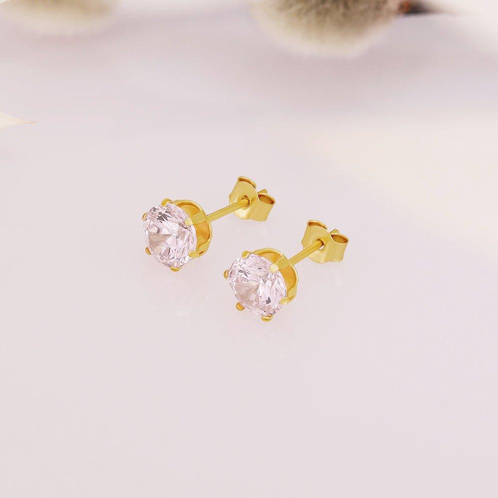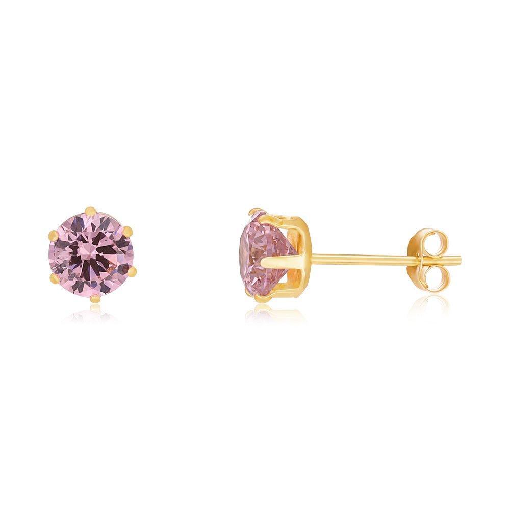 Yellow Gold 5mm Claw Set Pink Cubic Zirconia Studs