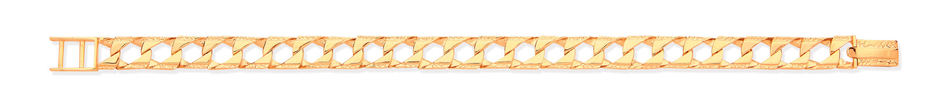 Yellow Gold 9mm Casted Grain Edge Gents Bracelet