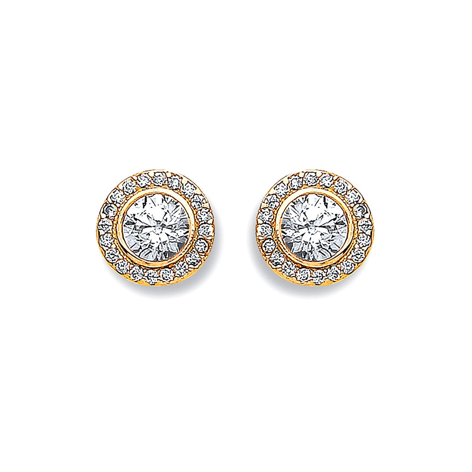 Yellow Gold 9mm Halo Cubic Zirconia Stud