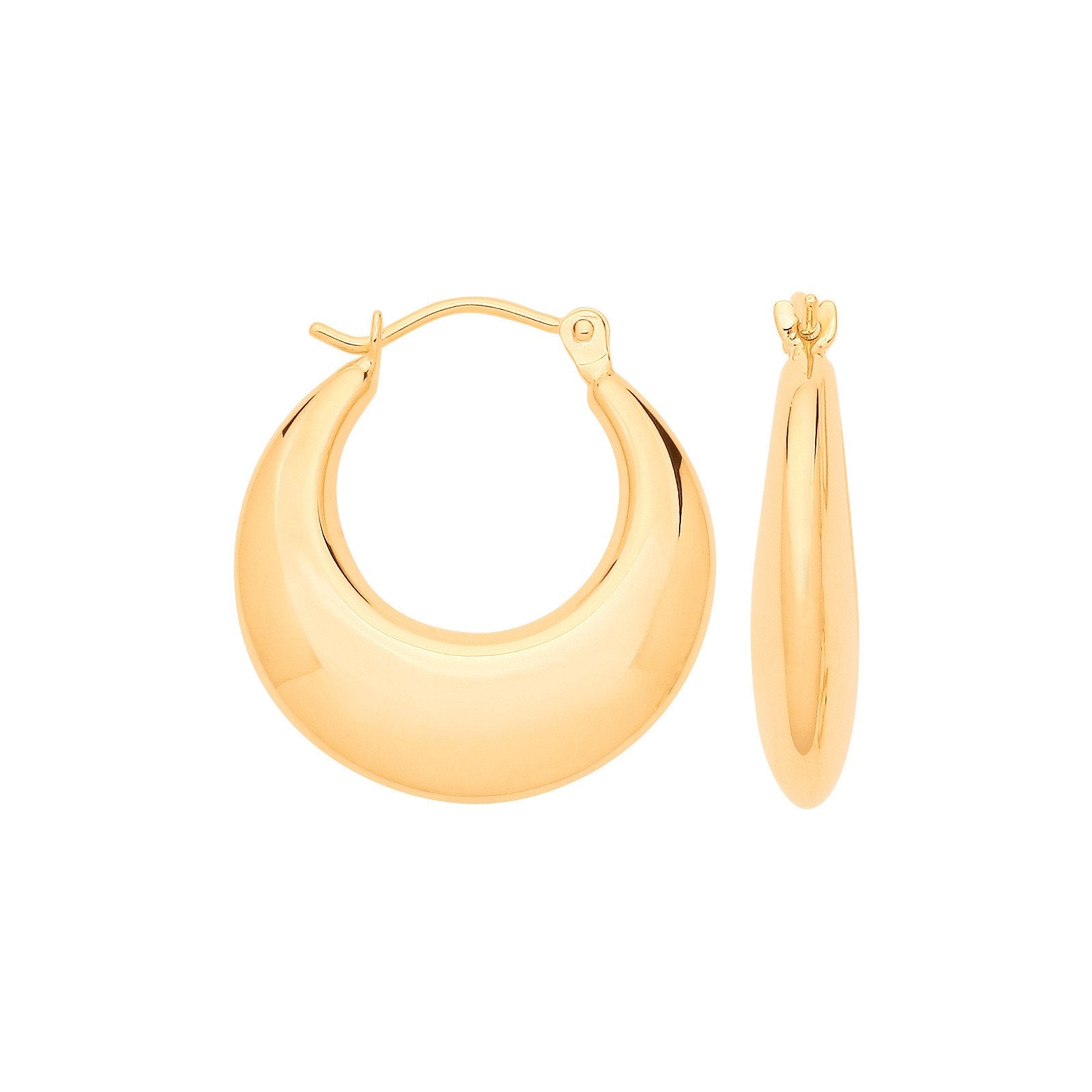 These charming 9ct gold curved Creole earrings exude timeless elegance, perfect for adding a touch of sophistication to any outfit. Effortlessly combines classic style with modern flair, making them suitable for both everyday wear and special occasions.