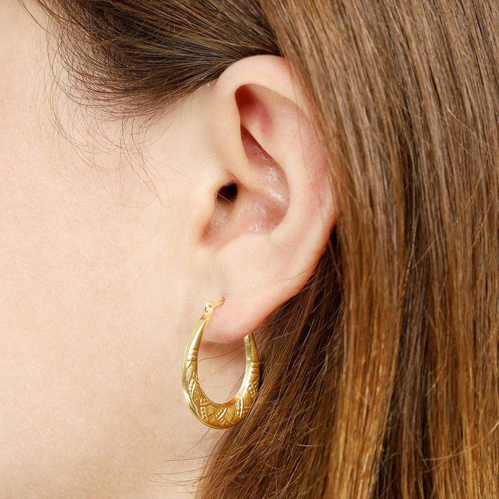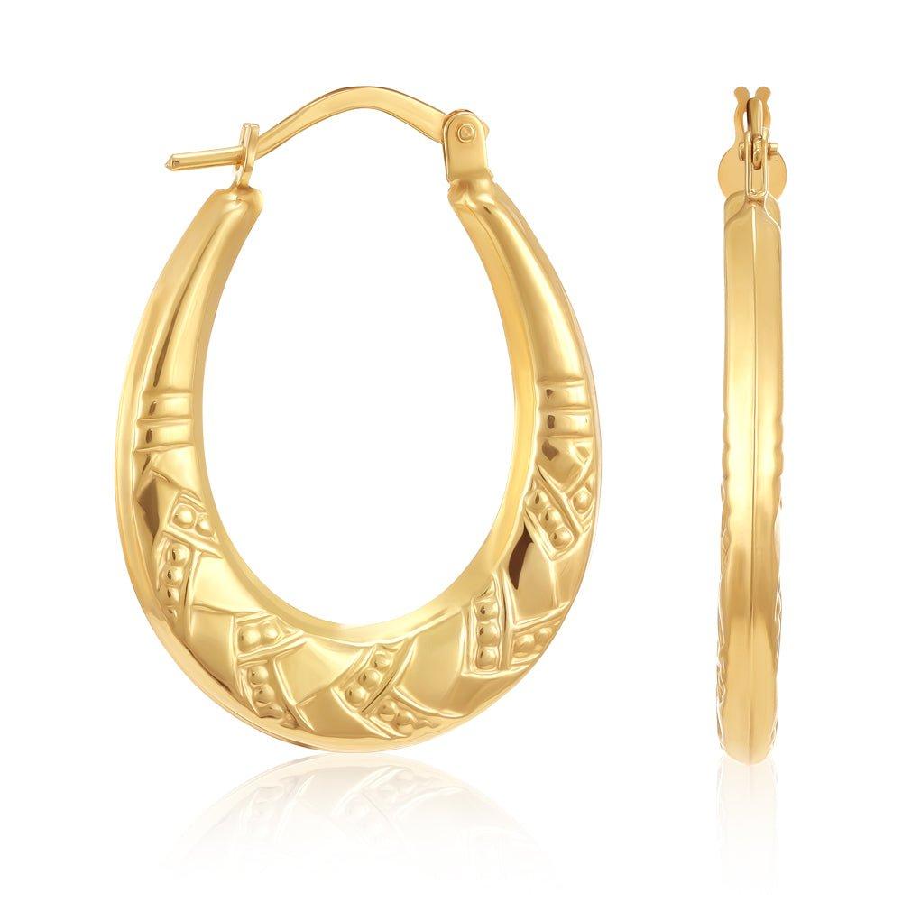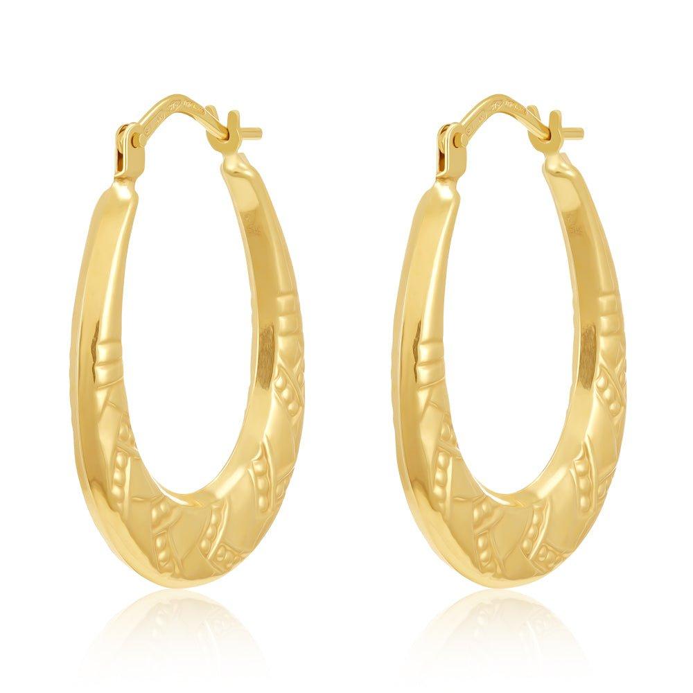 Indulging in a touch of everyday sophistication, these elegant 9ct yellow gold creole earrings are the perfect finishing touch to any outfit. Their classic oval design exudes timeless charm and versatility.