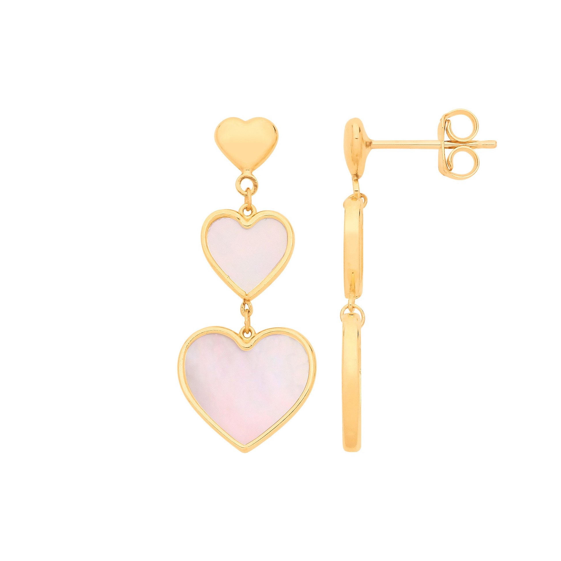 These exquisite Yellow Gold MOP Hearts Drop Earrings exude timeless elegance, making them a lovely addition to any jewellery collection. The delicate hearts, crafted from 9ct gold, dangle beautifully from the earlobe.