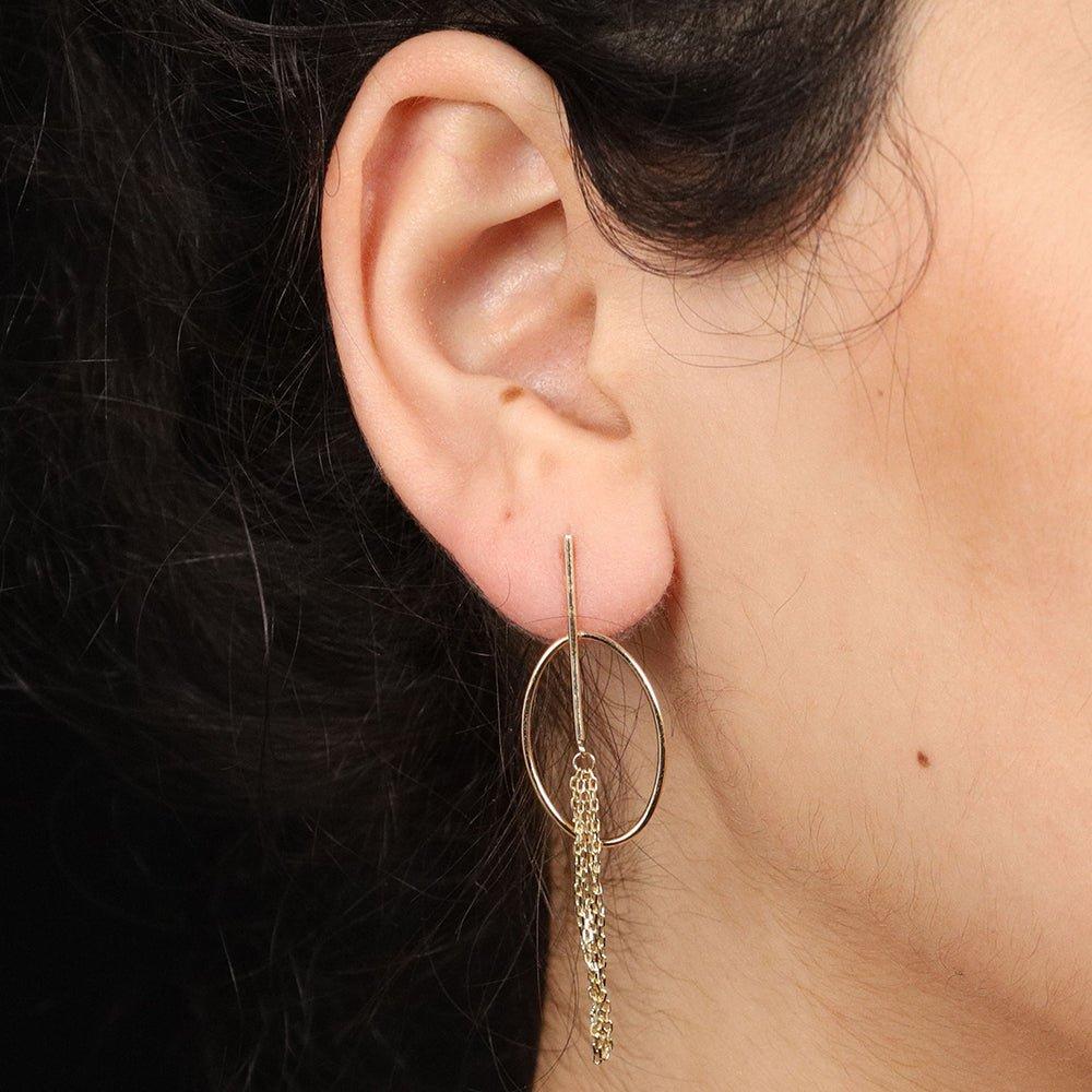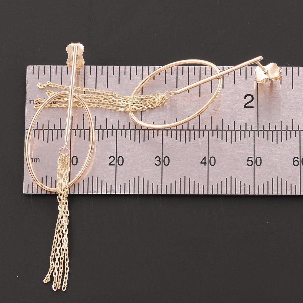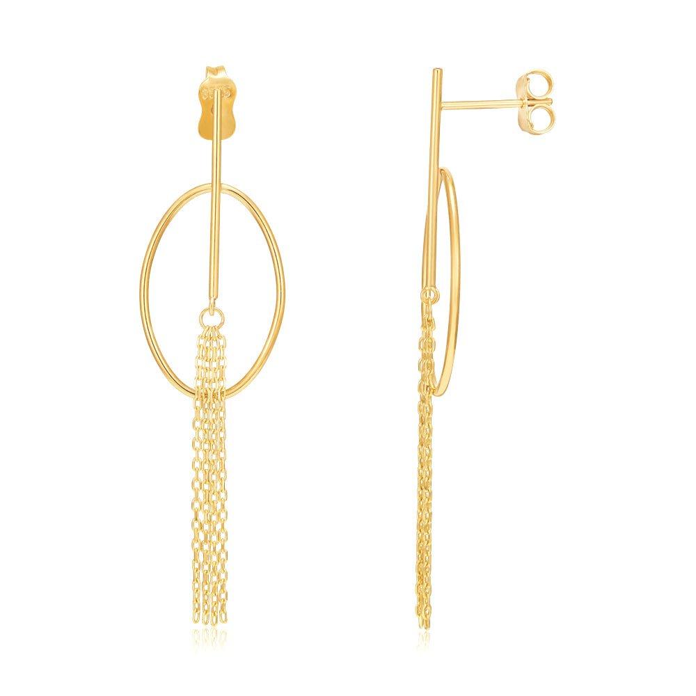 Yellow Gold Oval Tube Tassel Drop Earrings