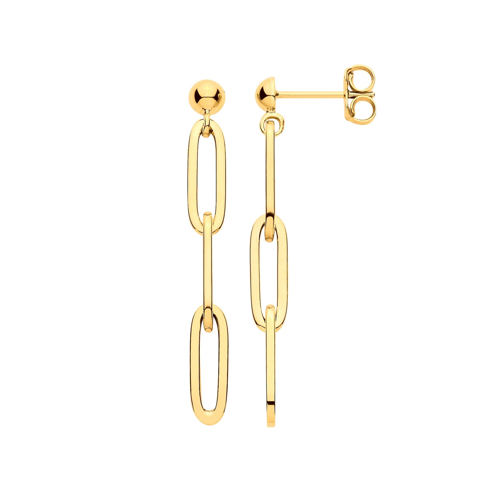 These elegant drop earrings feature a simple, yet sophisticated design, with a plain paper clip motif crafted from 9ct gold. Effortlessly combines classic style with a modern twist, making them perfect for everyday wear.