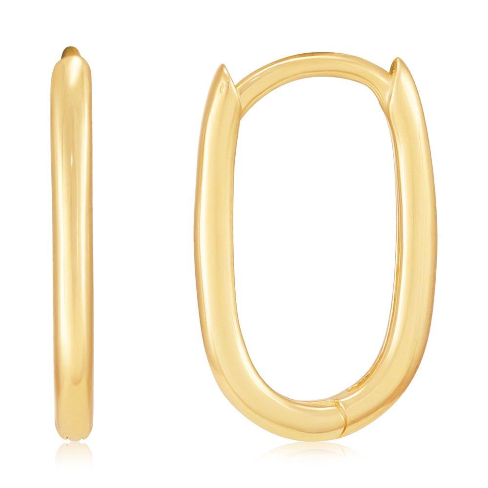 Yellow Gold Plain Hinged Oval Hoop Huggies
