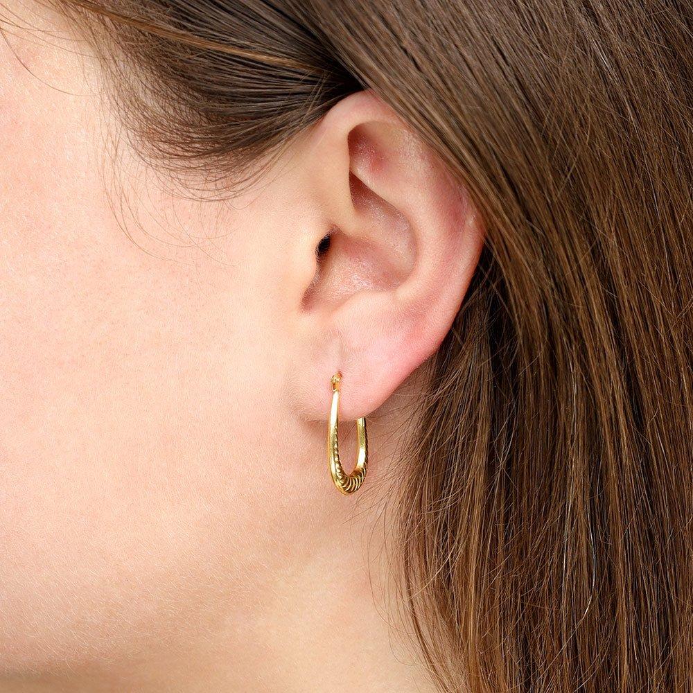 With their smooth, ribbed design and classic oval shape, these creole earrings effortlessly lend themselves to indulging in a touch of everyday sophistication. Whether dressing up or dressing down, they provide a versatile and stylish finishing touch.