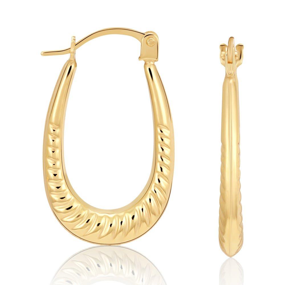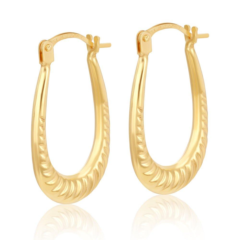 Exuding understated elegance, these Yellow Gold Ribbed Oval Creoles are the perfect addition to any jewellery collection. Crafted from 9ct gold, they boast a warm, sun-kissed hue that adds a touch of refinement to any outfit.