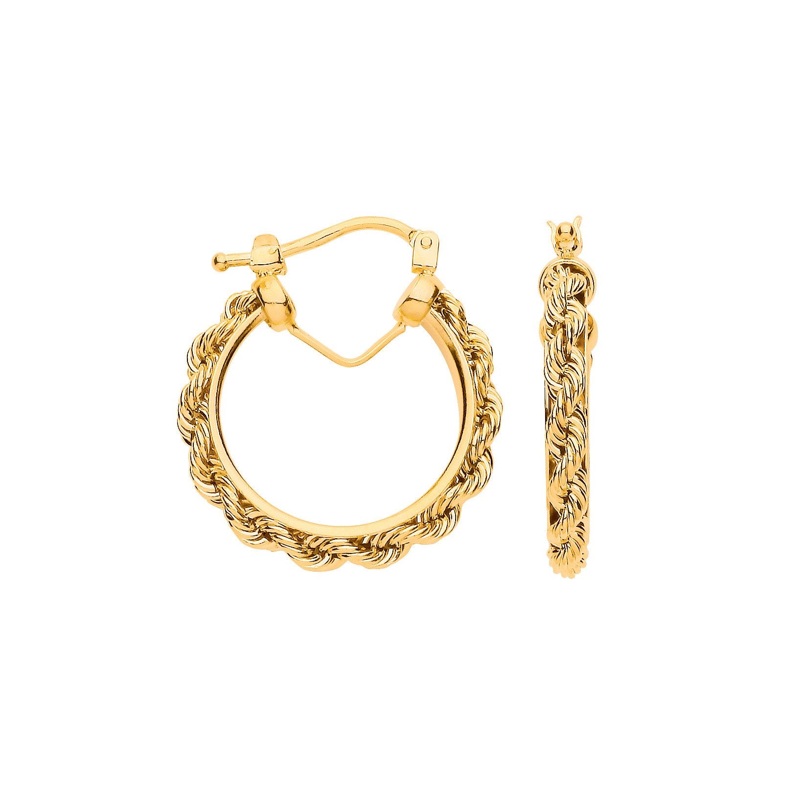 Yellow Gold Rope Chain 20mm Hoop Earrings
