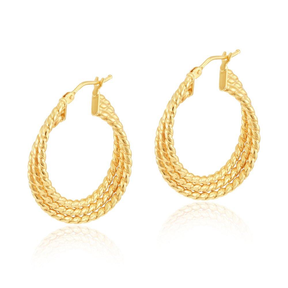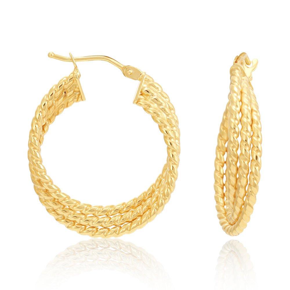 Yellow Gold Triple Layer Ribbed Hoop Earrings
